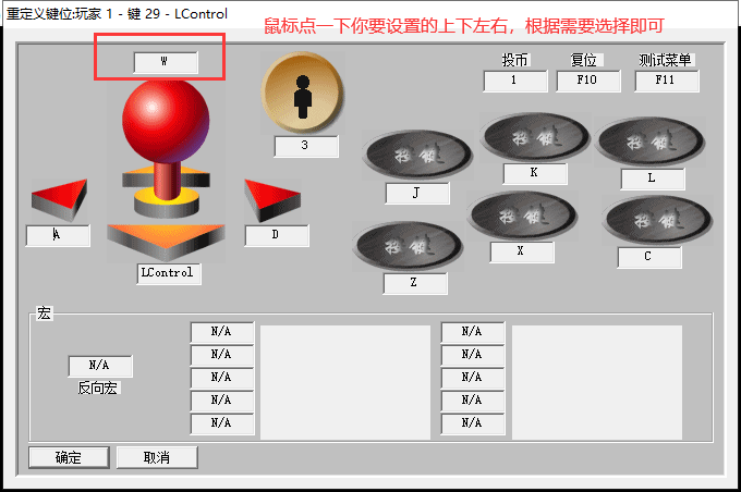 游戏 > 重新顶级键位设定 > 重新定义玩家1的键位设定