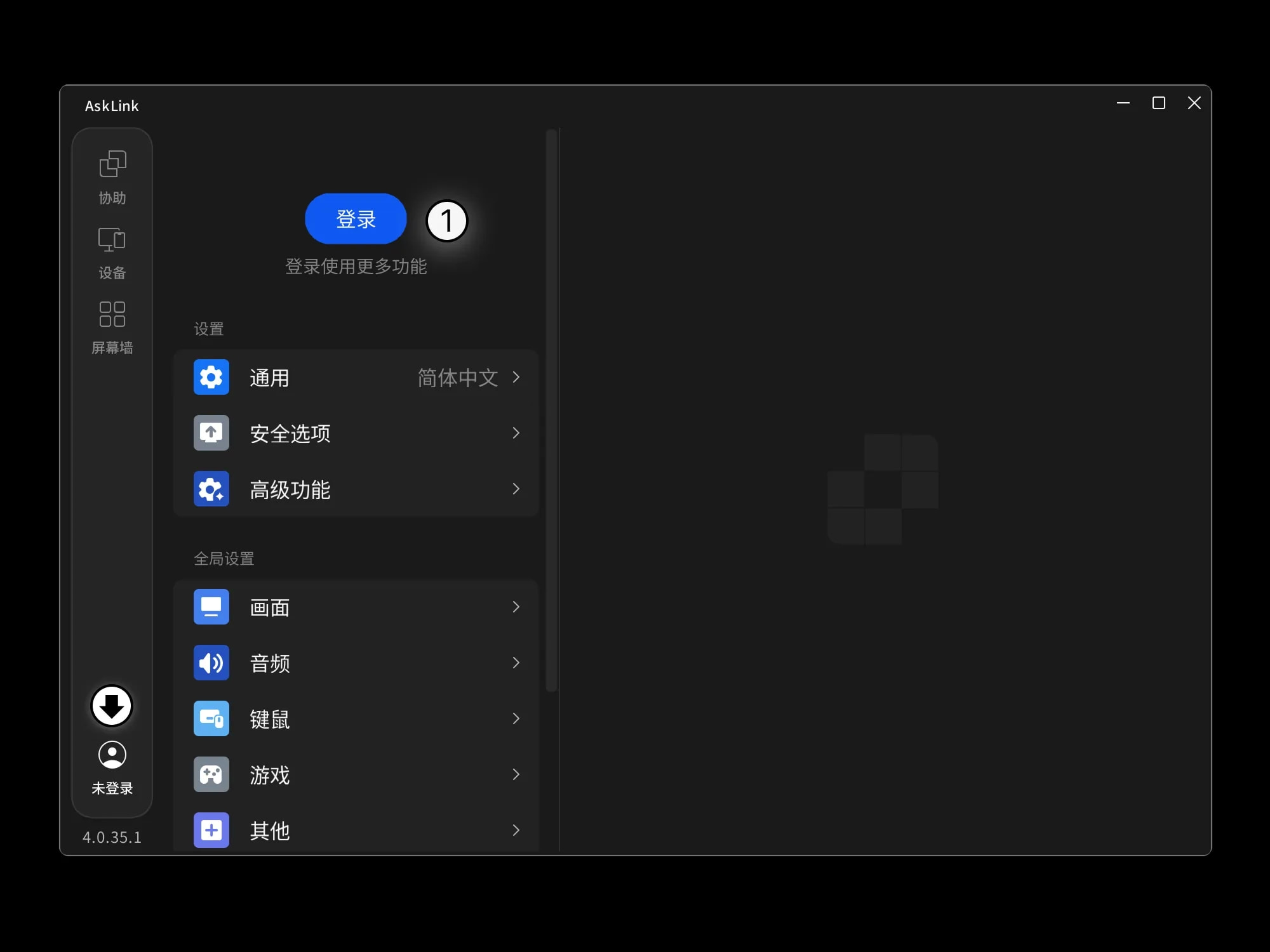 2、打开桌面端(Windows、macOS、Linux)连连控,点击 “我的” > “登录” 。