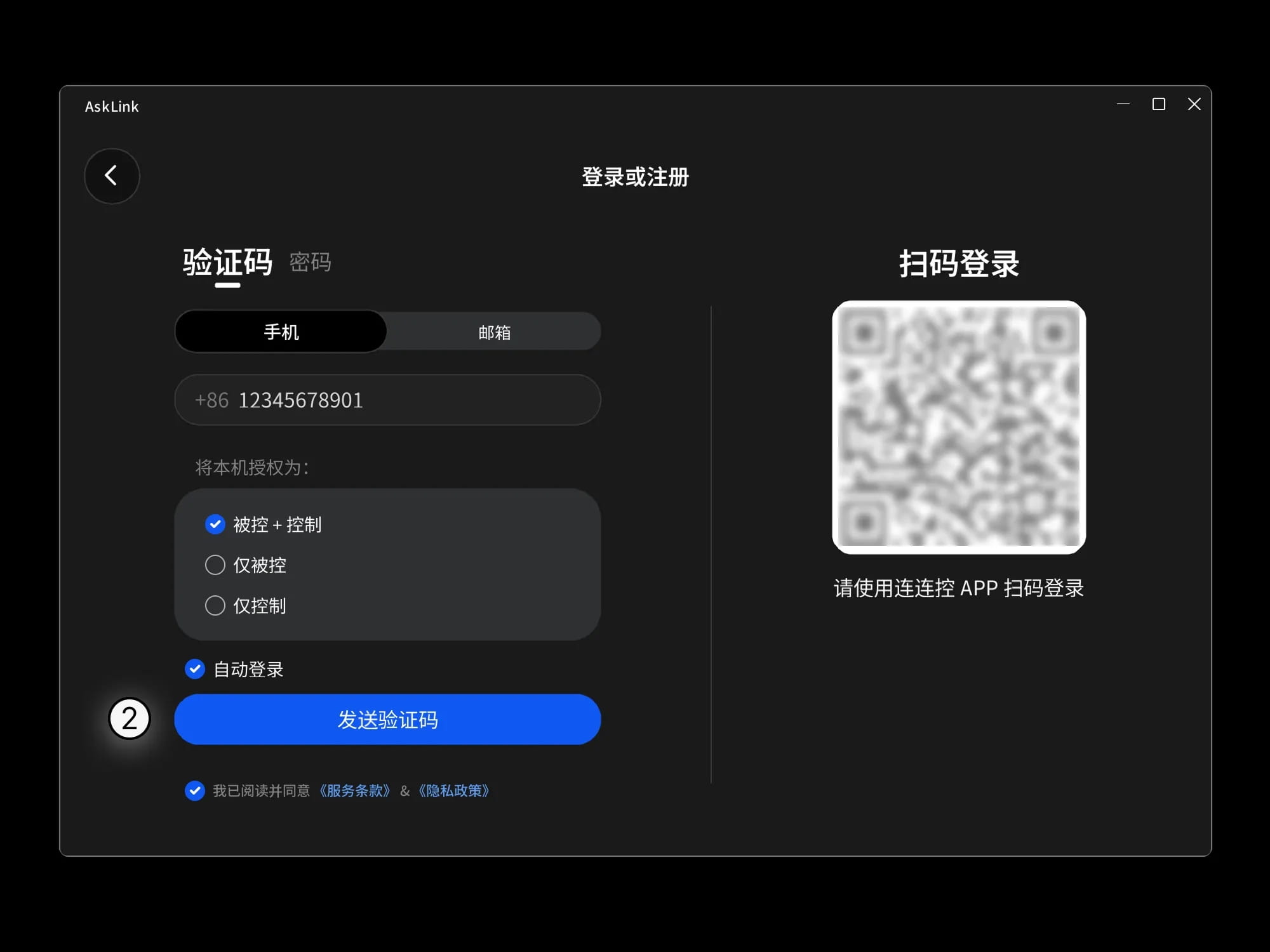 本节介绍连连控的账号注册与多种登录方式,适用于首次使用或在新设备上登录的场景。