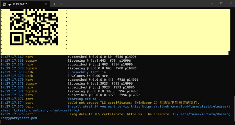 Windows版本使用起来相当简单,把copyparty.exe放到想要共享的文件夹,双击之,会出现分享端的界面
