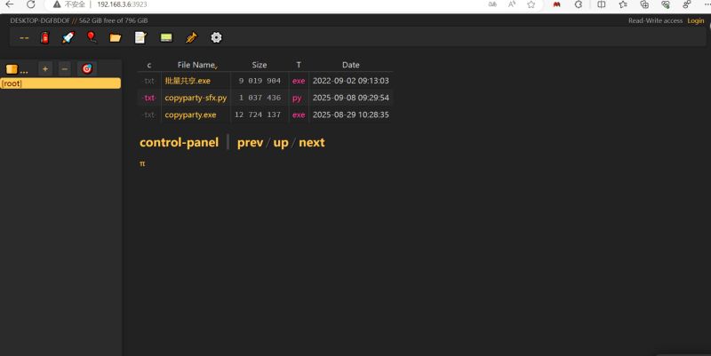 Copyparty可以把全平台的设备当作文件分享服务器 (NAS),不仅可以支持 HTTP/WebDAV/FTP/TFTP 服务,还支持断点续传、WebDAV 挂载等功能,只需一个网页浏览器即可使用。