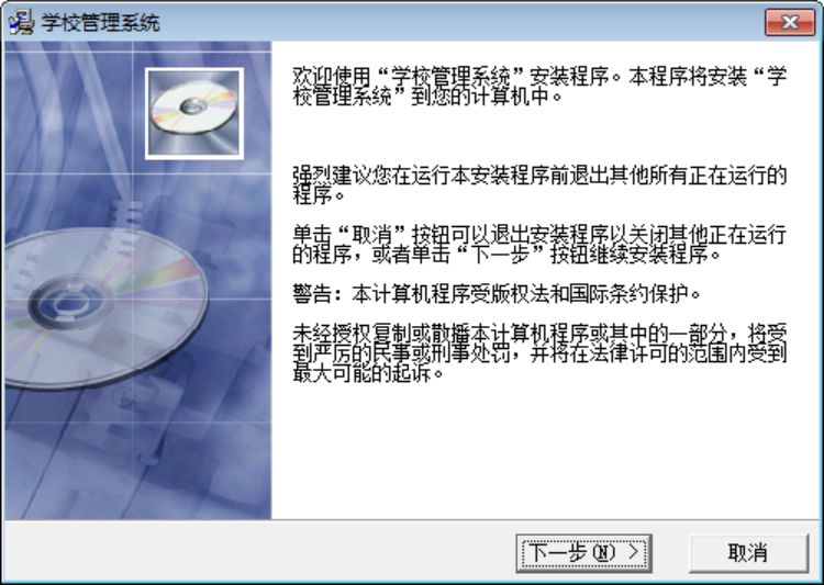2.双击打开,进入世高学校管理系统软件界面,点击下一步