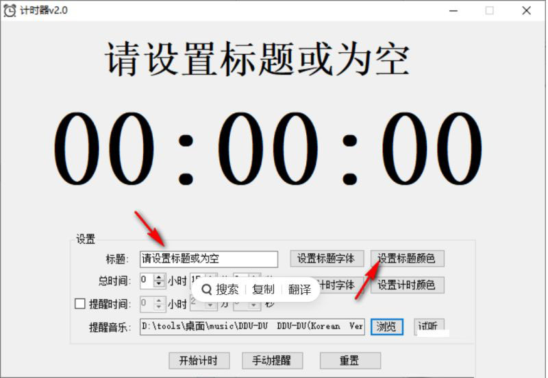 打开程序在标题出设置要定时完成的任务名称,标题字体和颜色可以自行选择