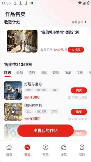2、创作完成后保存好作品,然后在app售卖界面选择平台进行售卖