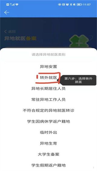 6、下一步选择转外就医;