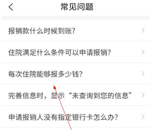 2、点击“每次住院能报多少钱”即可。