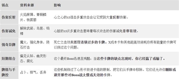 Tips:能在回合间携带格挡的效果,比如卡钳和模糊,可以利用心脏未攻击的回合。