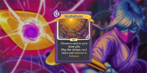 全知让你在抽牌堆里选一张牌,然后立刻打两张,用完它。由于天神形态是力量卡,你不必担心它会被疲惫,这样它会打出两张天神形态,效果翻倍。