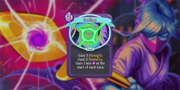 禁食是一张力量卡,能给你3点力量和3点敏捷,但能量会减少1点。不过,凭借天神形态的能量加成,你无需担心禁食的缺点,可以立即享受属性的巨大提升。