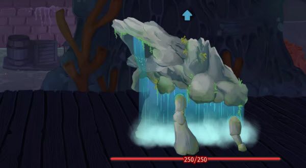 3、瀑布巨兽,很有意思的一个新机制,平时会积累蒸汽值,在击杀之后,他会变无敌,然后试图自爆拉着我们一起陪葬。整体难度不是很高,在蒸汽层数堆叠起来之前击杀掉BOSS就行,实在拖得久还可以在濒死一击的回合,堆叠格挡保命。