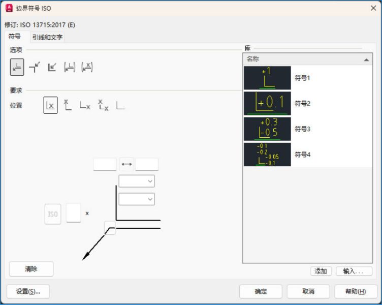 “边界符号 ISO”对话框提供了最新的表示法和要求。该对话框支持各种选项和位置以将边界符号放置在图形中。它还提供了定义边界数量和指示边界有限区域的选项。