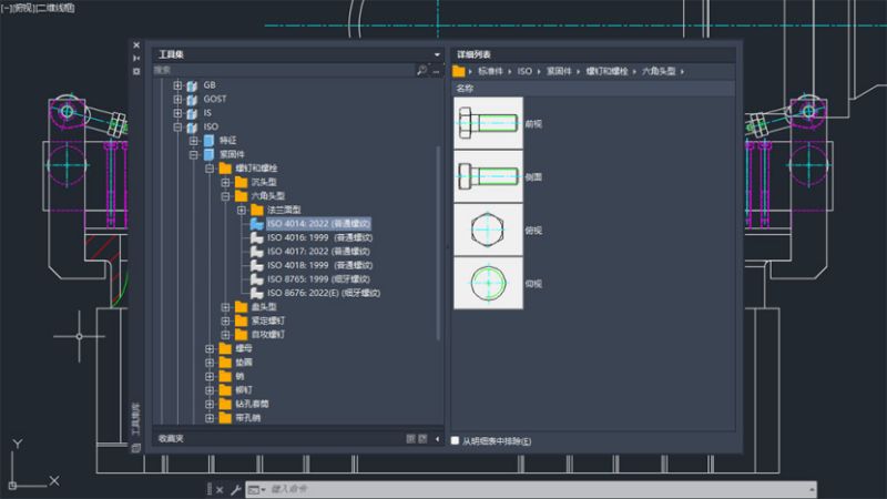 提供包括螺钉、螺母、轴承等基于标准的智能化标准件库,支持动态调整。