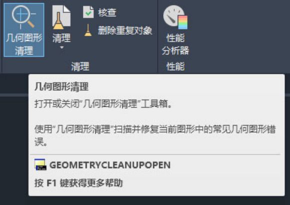 - GEOMETRYCLEANUPOPEN - 打开“几何图形清理”选项板。