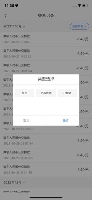 5、点击右上角全部类型,进入交易类型选择页面,选择交易类型,可单独筛选出已选择的类型交易记录。