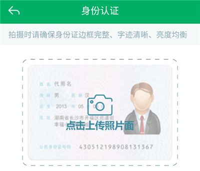 2、上传你的身份证照片,保证边框完整、字迹清晰和亮度均匀。