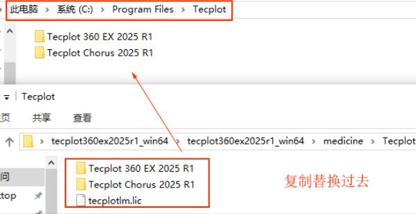 2、安装好后,先不要打开软件,将medicine文件下面的所有文件复制到软件安装目录下替换;默认目录【C:\Program Files\Tecplot】