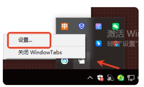 如果要想管理的程序的话,点击菜单栏,找到windowtabs,点击设置;